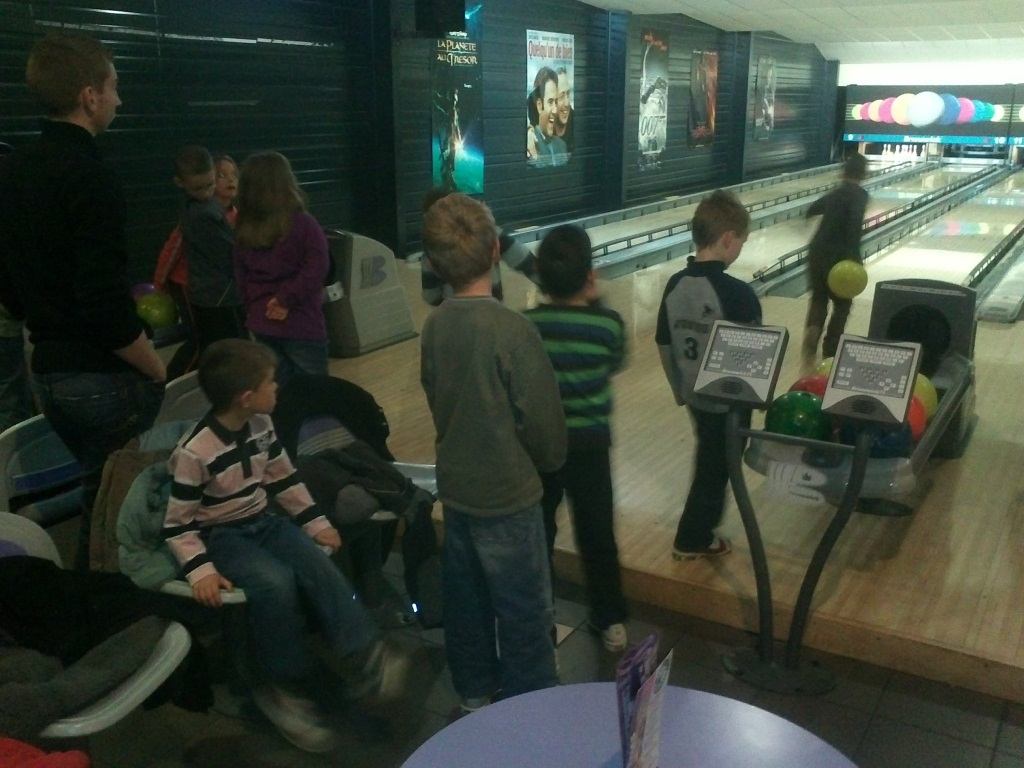 Pour les petits une projection du film d'animation "les schtroumpf" et pour les grands 3 pistes de bowling rien que pour nous. La grande gagnante du jour est Ludivine avec ses 105 points.