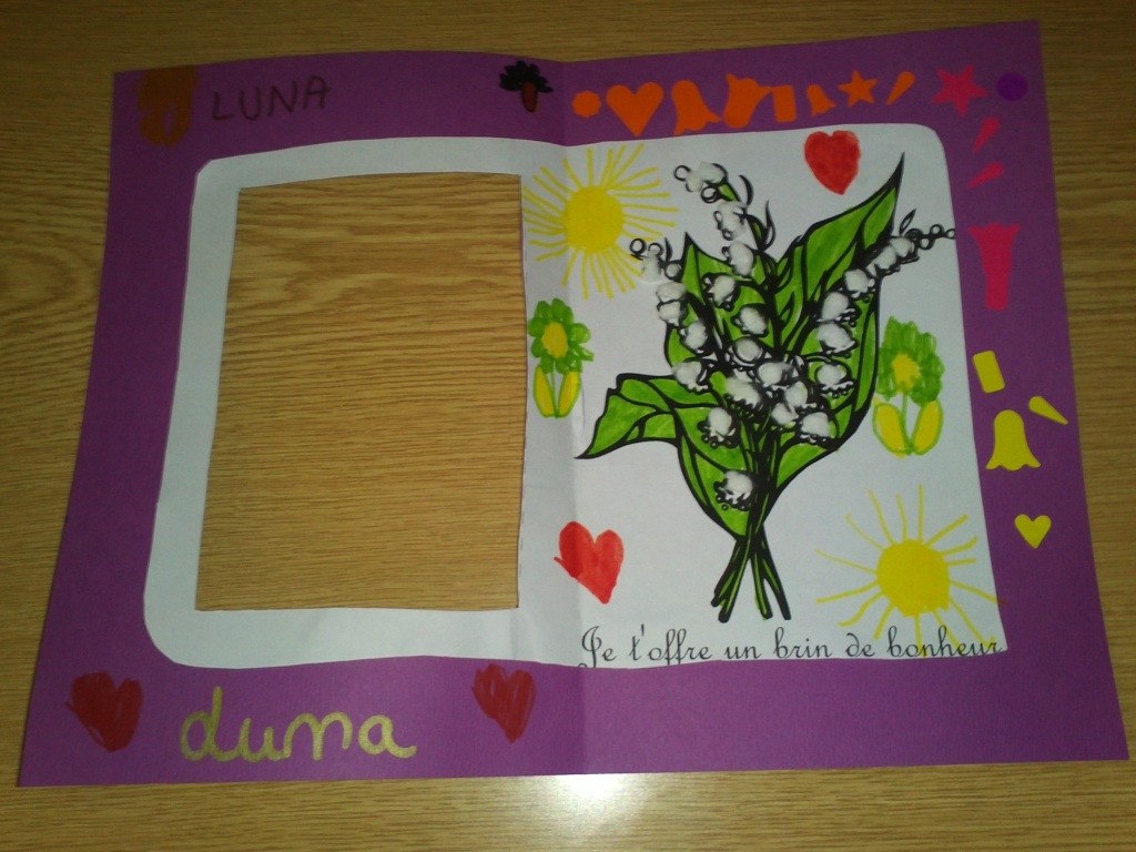 Demain c'est le 1er Mai alors il faut trouver du muguet pour maman, la météo n'étant pas de la partie, il faut trouver une autre solution. Ce sera fabrication d'un brin de muguet pour les plus grands et fabrication d'une carte pour les plus petits.