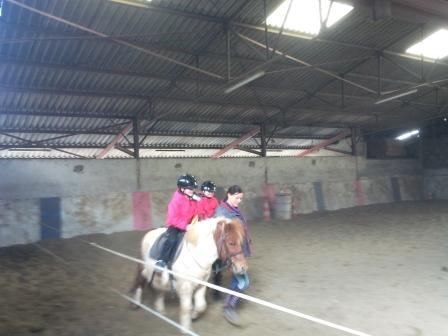Un groupe montait sur les poneys dans le manège ou même en promenade pour les plus allaises avec la monitrice Pauline. Pendant ce temps là le deuxième groupe s'occupait du brossage des poneys et du nettoyage des sabots avec Karim. Enfin le troisième groupe faisait la visite de la ferme et de ses nombreux et différents animaux avec Emilie Oriane et Loic.