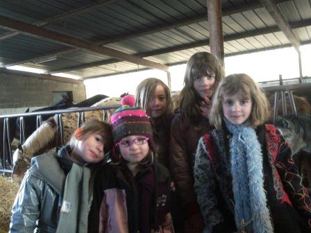 Héloïse appliquée au néttoyage des sabots sous le regard de Mégane, Naïs et Daphné