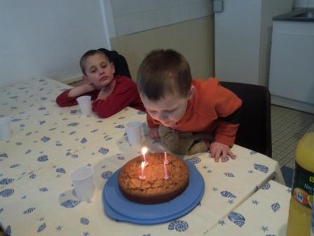 4 ans ca se fête alors les bougies s'imposent. Maxime a tout souflé d'un coup.